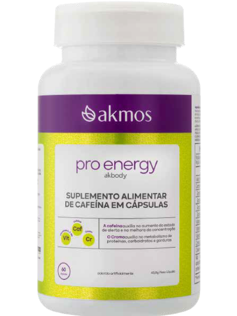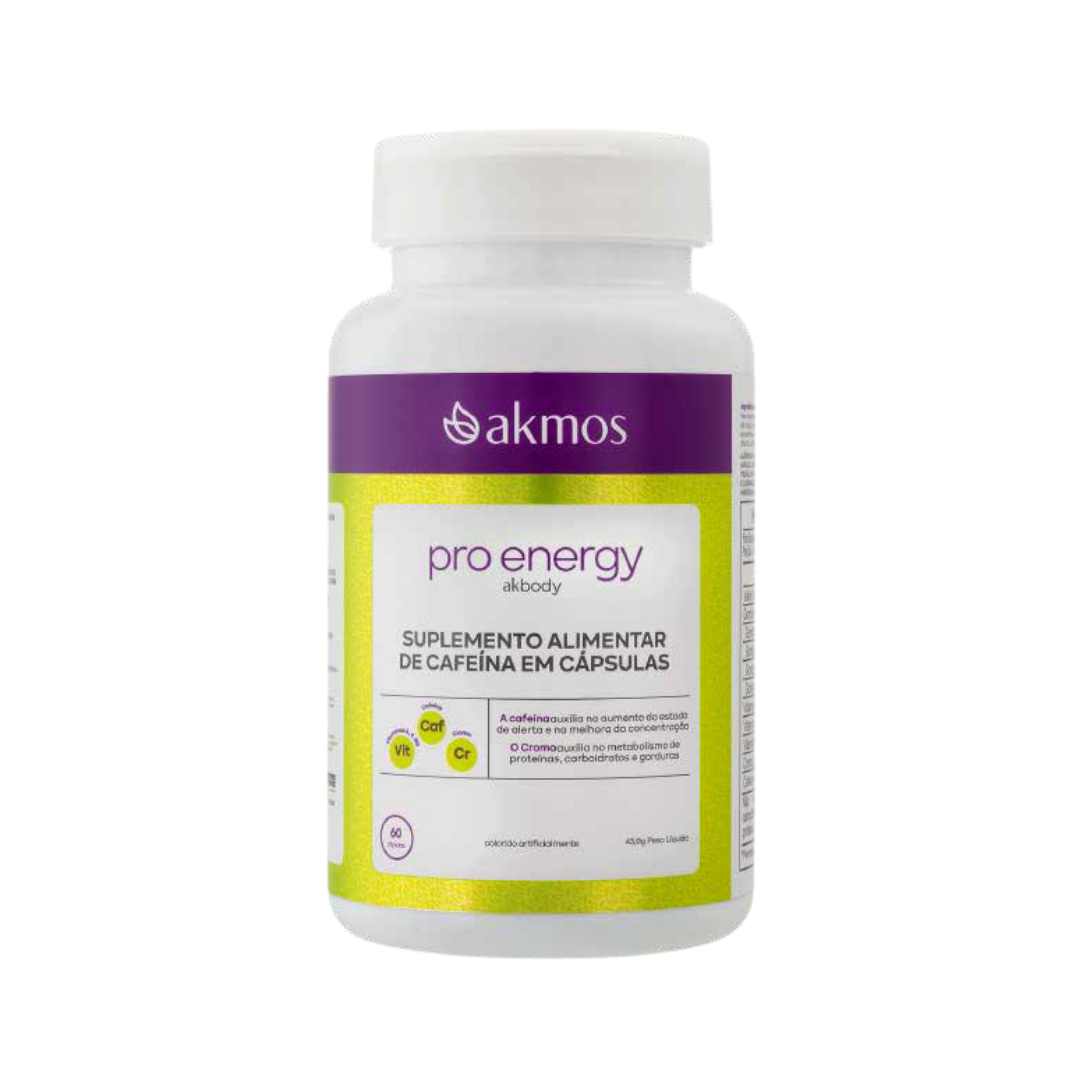 O Pro Energy Akmos é um suplemento em cápsulas formulado para oferecer suporte ao estado de alerta, foco e energia. Sua combinação de cafeína anidra, óleos vegetais e vitamina B5 promove estímulo imediato e sustentado, melhorando o desempenho físico e mental. Com dosagem prática de duas cápsulas ao dia, o Pro Energy é ideal como pré-treino ou para rotinas que exigem concentração, resistência e vitalidade.