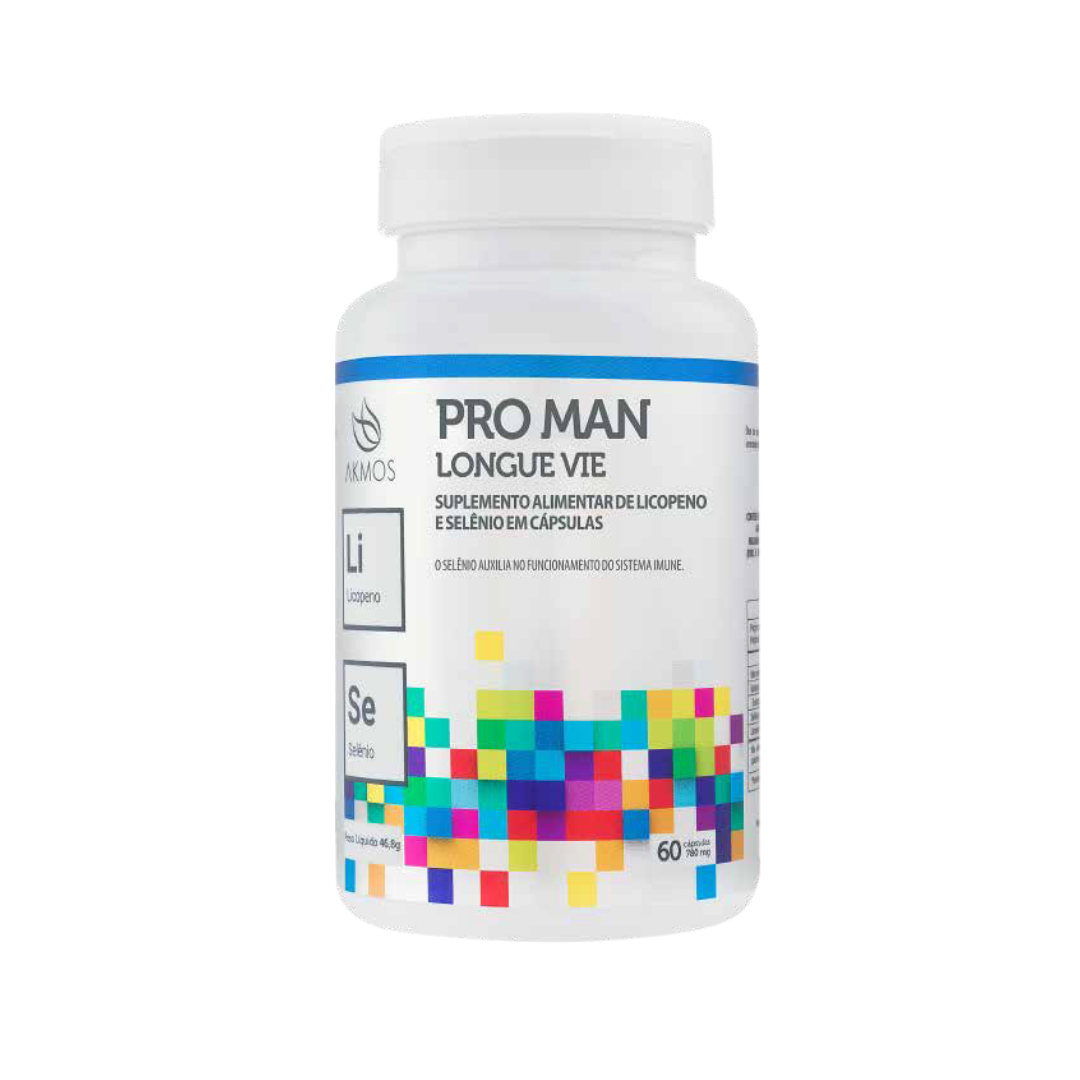 Um suplemento formulado especialmente para atender às necessidades da saúde masculina, combinando Licopeno e Selênio em uma base nutricional de alta eficiência. Esses nutrientes oferecem suporte antioxidante, auxiliam na proteção celular e fortalecem o sistema imunológico. Indicado para homens acima de 19 anos, o Pro Man é prático e de fácil integração à rotina, exigindo apenas duas cápsulas ao dia para atingir o aporte ideal desse micronutrientes essenciais. Sua embalagem foi desenvolvida para preservar a qualidade do produto, garantindo estabilidade e eficácia durante todo o uso .