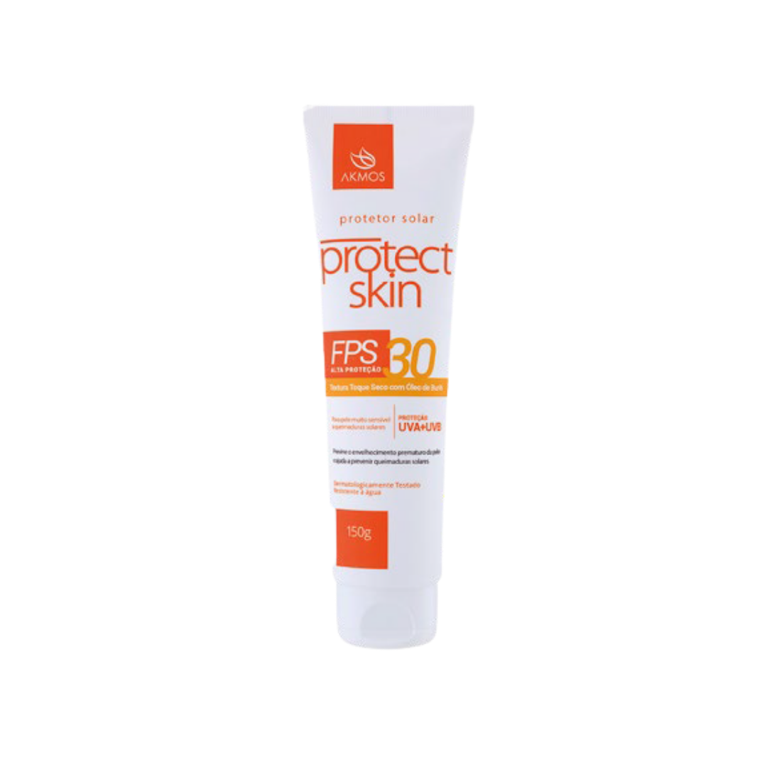 O Protect Skin FPS 30 é o protetor solar facial e corporal desenvolvido para oferecer proteção eficiente contra os raios UVA e UVB, prevenindo queimaduras solares e o envelhecimento precoce da pele. Sua textura leve e de rápida absorção proporciona um toque seco e suave, evitando a sensação oleosa e pegajosa comum em protetores solares convencionais. Além de proteger, o produto hidrata e mantém a pele levemente perfumada, sendo ideal para uso diário e para todos os tipos de pele. Resistente à água e ao suor, garante segurança e conforto mesmo durante atividades ao ar livre, na piscina ou na praia.